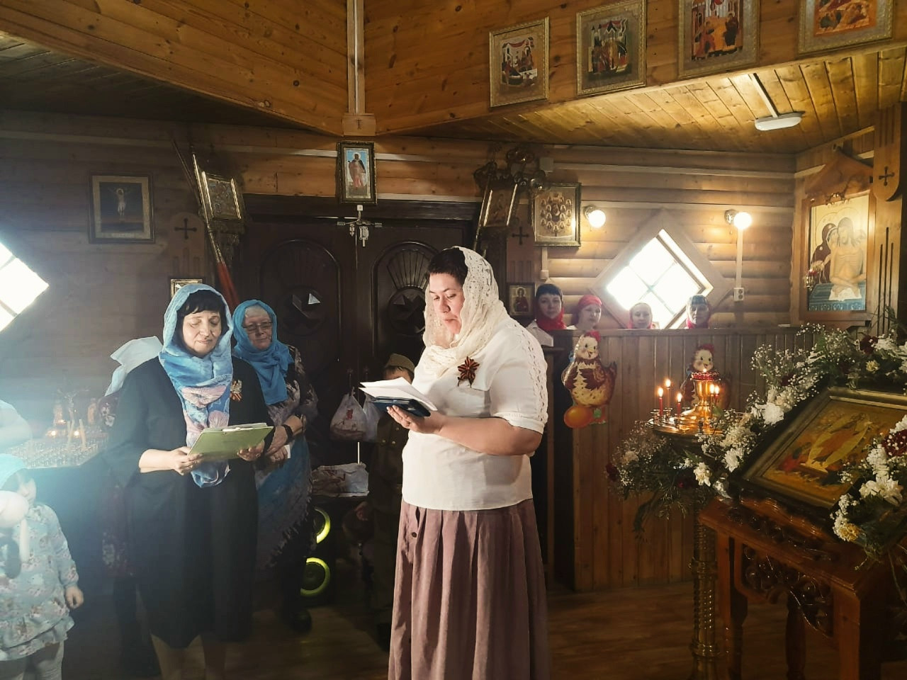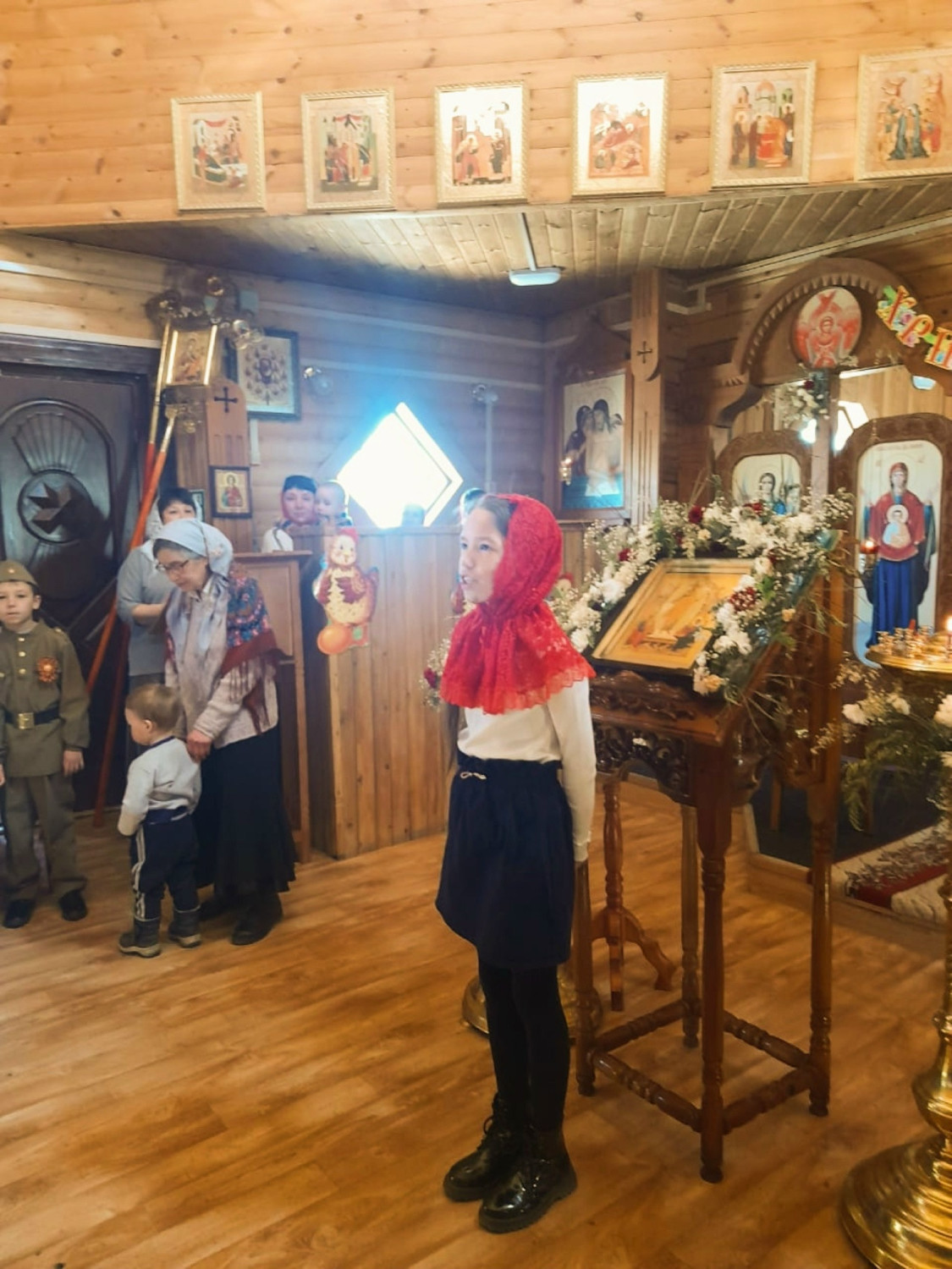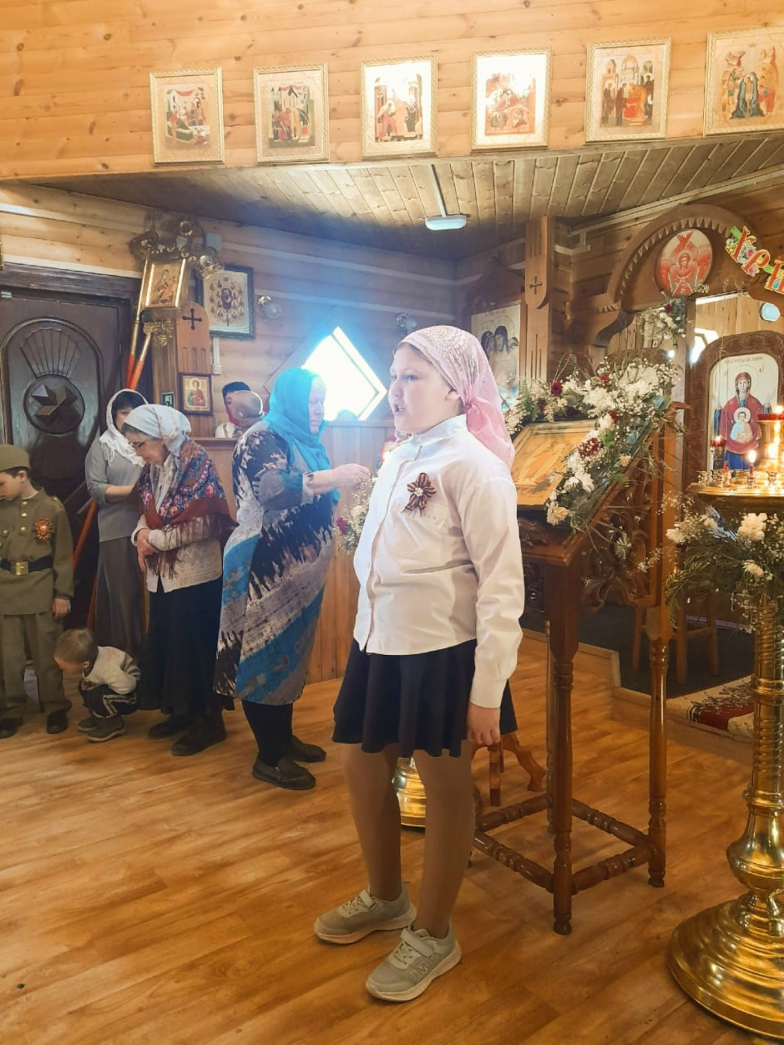 В храме Всех Святых в пос. ЧЭС прошёл праздничный утренник, который объединил в себе три великих праздника: Светлое Христово Воскресение, День жен - мироносиц и День Победы.