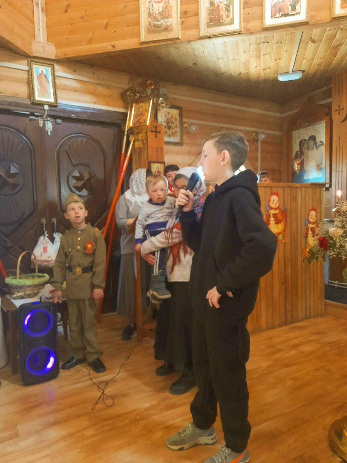 Трогательные стихи, лирические песни о войне наполнили своды храма. Юные прихожане со всей серьёзностью отнеслись к своим выступлениям. "Победная весна 45-ого", "Наша армия самая сильная" в исполнении наших маленьких защитников Родины никого не оставили равнодушными!